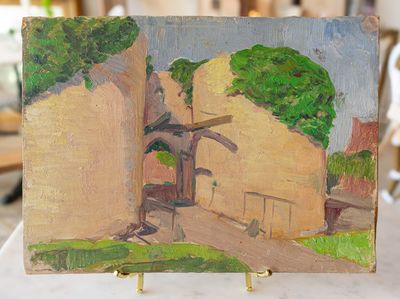 Schwalberg Painting 10Mid-20th c. Cottage with Garden Arch